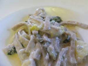 郷土料理としては、そば粉のパスタのピツォッケリは黒いショート タリアテッレで、ジャガイモとちりめんキャベツ、ニンニクとたっぷりのバターとチーズを絡めるボリューム満点の料理です。